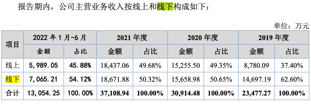 然而,2022年上半年,线上收入占比却十分反常的下降,且直接影响了整体业绩。