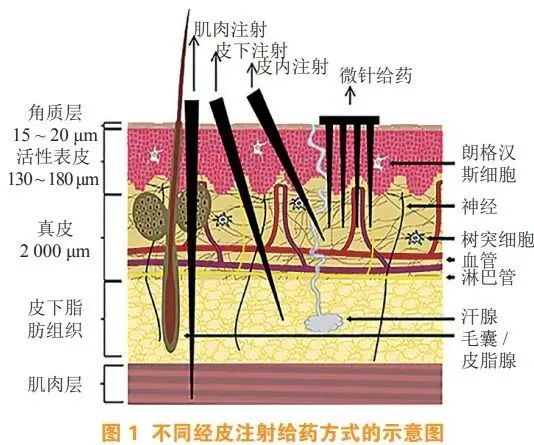 图:微针刺入皮肤示意图,截自参考文献[2]