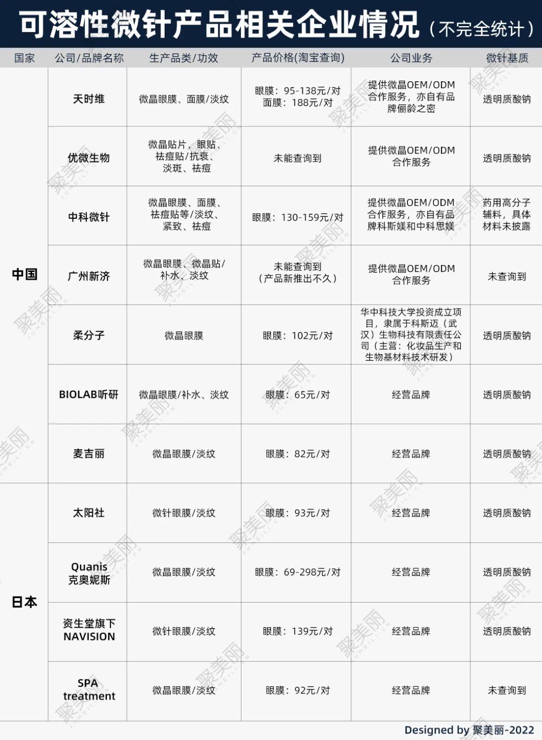 不过这几家企业除了提供化妆品方面的服务外,企业本身也注重可溶性微针药用贴片的生产以及提供相应服务,这在生产质量上给予了化妆品一定保证。