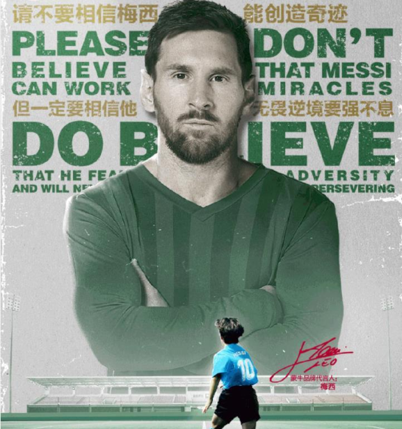 本次梅西和阿根廷的失利,也是蒙牛最大的遗憾之一,不过,蒙牛也还是有两把刷子,在结果出来的当天早上,就神预言般地推出了出自梅西的“请不要相信梅西能创造奇迹,但一定要相信他无畏逆境,要强不息”的海报,一度引发刷屏,堪称年度“危机公关”的典型了。