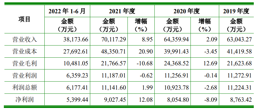 招股书显示,2019年至2022年上半年的报告期内,鼎龙科技实现营业收入分别约为6.3亿元、6.44亿元、7.01亿元和3.82亿元,同期实现净利润分别约为0.88亿元,0.81亿元,0.9亿元,0.54亿元,其中或许是受疫情影响,2020年净利润同比下降8.09%。
