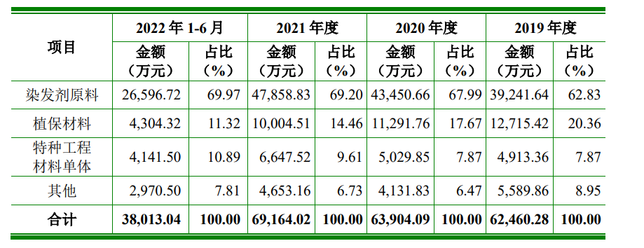 招股书强调,鼎龙科技三大主营业务分别为:染发剂原料业务;植保材料业务;特种工程材料单体业务。客户群体覆盖化妆品、植保产品、特种工程材料等多个应用领域。