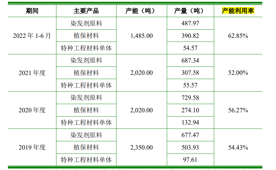 值得注意的是,鼎龙科技本身的产能利用率并不算高。报告期内,公司产能利用率分别为54.43%、56.27%、52%和62.85%。虽然公司对此解释称,因批复产能中共线产品产能叠加计算导致批复产能数据较大,按此计算的产能利用率相对较低,公司实际生产负荷较高。但公司根据生产线投料情况测算的产能利用率仍然大约仅为68.84%、83.74%、84.57%和89.42%。