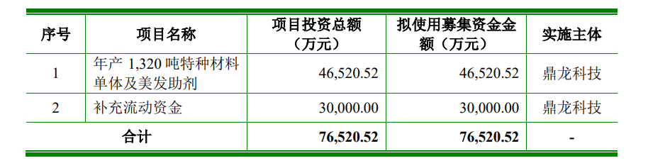 为此,鼎龙科技拟募集资金7.65亿元。其中约4.65亿元将用于“年产1320吨特种材料单体及美发助剂”。2021年鼎龙科技特种材料单体及染发剂原料的全部产量仅约742.91吨,扩产项目建成之后计划形成年产1320吨特种材料单体及美发助剂的生产能力。并且鼎龙科技特种材料单体及染发剂原料的外购销量高出自产销量许多。在这种条件下,鼎龙科技仍将大部分通过IPO募集的资金用于扩大产能。