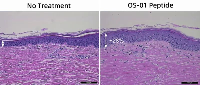 来自55岁皮肤的细胞结构使用前后对比图,右图为使用过OS-01皮肤明显增厚,图片来自OneSkin官网