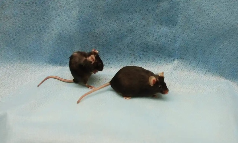 两只双胞胎小鼠,右边的小鼠因被移除衰老细胞后看起来更加年轻,图片来自梅奥医院
