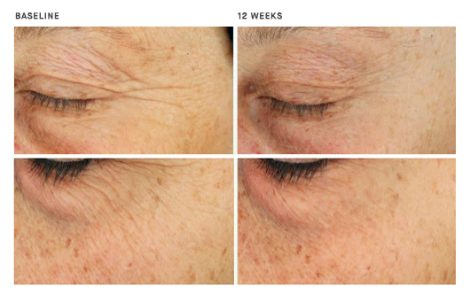 OneSkin也进行了一项为期 12 周的双盲临床研究,由22名年龄在 47 至 65 岁之间的女性参与者组成。参与者在12周之内每天两次,在右脸涂抹不含有OS-01的精华,在左脸涂抹含有OS-01的精华。调查结果显示: