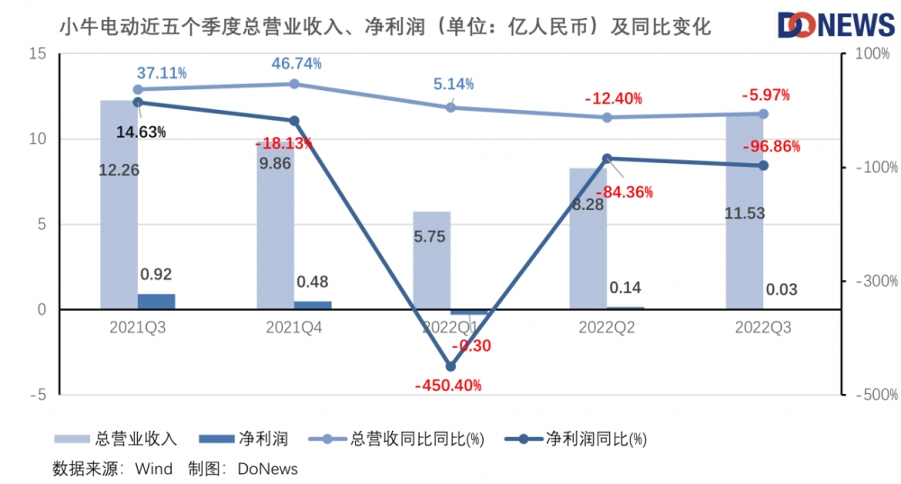 小牛电动各季度营收/净利润变化趋势图片来源:DoNews