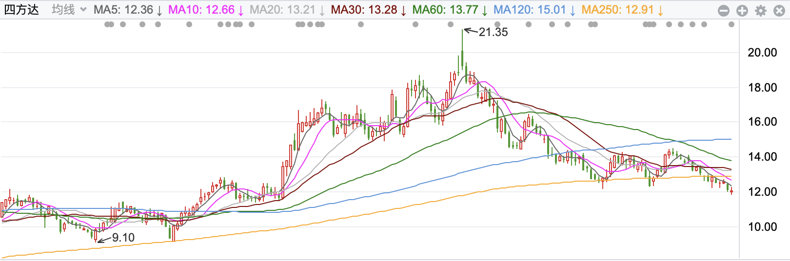 二级市场方面,今年四方达的股价波动剧烈,先由3月28日的最低点9.1元涨至8月15日的21.35元,随后一路下滑,截至11月28日收盘报12.06元/股,较最高点跌超4成。