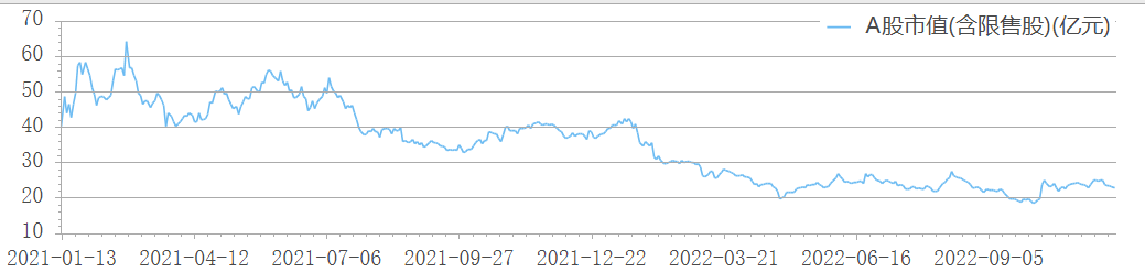 2021年1月13日上市以来,公司市值最高达64亿元,目前已跌去41亿元,2022年11月28日市值仅为23亿元,跌幅达64%。当前公司市盈率也高达41倍。股价报36.39元/股。