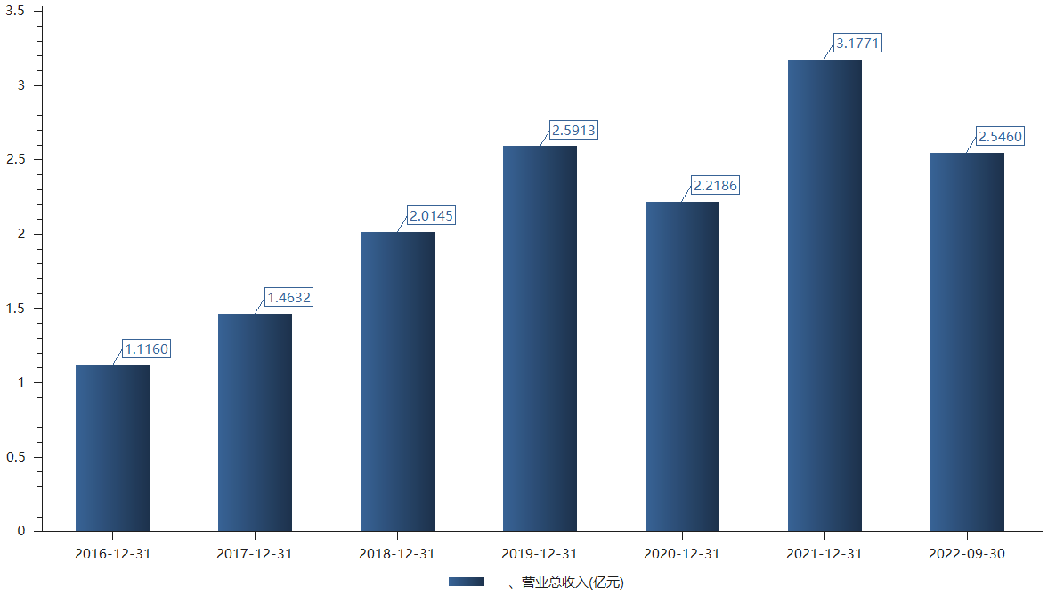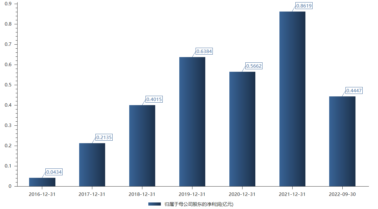 公司总资产仅为8.9亿元,净资产为7.84亿元。2018年以来营收常年在2亿元至3亿元附近。净利润在0.4亿元到0.9亿元之间。2022年前三季度营收约2.55亿元;归属于上市公司股东的净利润为4447万元。