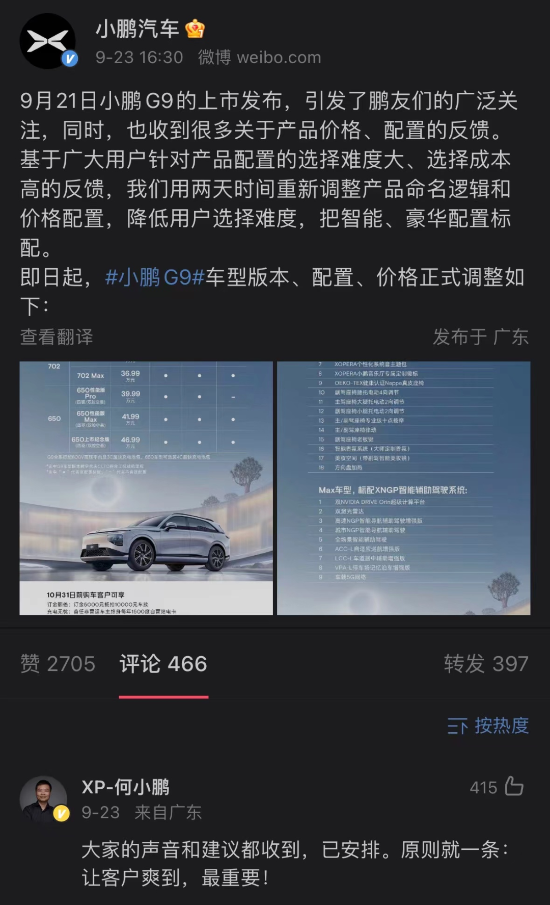 G9定价风波当晚,何小鹏火线回归小鹏汽车一号位,不仅亲手调整定价体系,并借机对整个公司的组织架构进行快速改革;