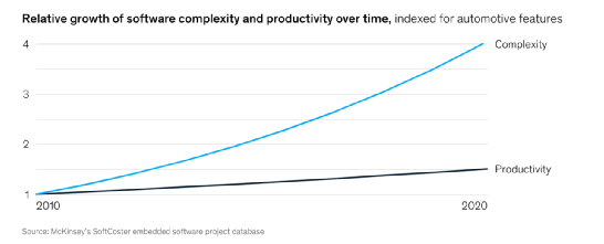 虽然在过去几十年里,一辆汽车上的“软件浓度”在不断增加,但这些软件通常都存在于嵌入式的零部件中,汽车厂商以组装的方式把它们集成到整车中。而进入智能汽车时代,汽车身上的功能不断增加,这种粗放堆叠的方式将使得整合变得复杂和难以处理。