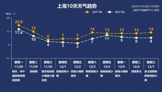 11月28日17时,上海中心气象台发布了下半年首个寒潮蓝色预警,“寒潮”今日抵达!降温效果让人瑟瑟发抖。