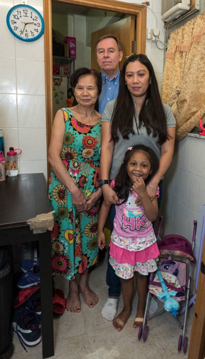 斯诺登第一次接受庇护的地方,就是Nadeeka和Supun居住的公寓。公寓由一家本部位于瑞典的国际社会服务机构(ISS)经营,是一个正式的非政府组织(NGO),ISS和香港政府签订了一个相当合算的合同,主营难民居住屋。2015年时,市民大规模的抗议迫使城市管理者关闭并清理了超过60个的贫民窟:据报道,ISS的工作人员们将难民们送到了牟取暴利的贫民窟房东那里,他们将难民们安置在猪圈和鸽子笼一样的地方居住,以此从数百万的社会福利拨款中获利。政党、ISS高层以及恶劣房东们至今仍一脉相连。