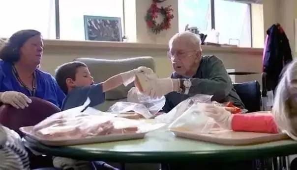 比如,纪录片里有一幕是一位坐着轮椅的老人想帮一个孩子解开外套,但她最终放弃了,并温和地感叹了一句“我现在连这个都做不来了”(如上图)。另一幕中,老人和幼童一起为流浪汉做三明治(如上图),正常人只需要30秒就能做好,但是他们做的时间要长很多,没关系,你能看到每个人脸上甜蜜的笑容。布里格斯说:“你可以告诉孩子,一起做这个是因为大家需要互相帮助。”