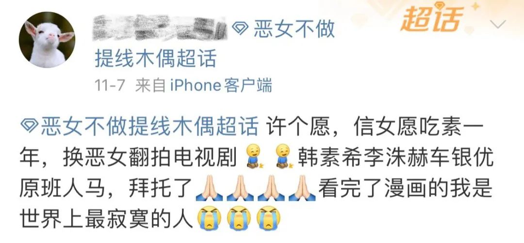 每逢新物料放出,国内微博、抖音、小红书等平台上,相关内容总会引得一波又一波女生好奇询问“什么剧什么剧”,或赞叹企划为“颜狗盛宴”。哪怕在这些平台,漫画IP的词条名称尚未统一,可网友们并不会深究其到底名为《恶女不做提线木偶》还是《恶女是提线木偶》《恶女马里奥内特》——不过当她们得知这只是一则漫画广告,所有正片时长总计仅三分钟后,却都不约而同地表达了自己的惋惜之情。