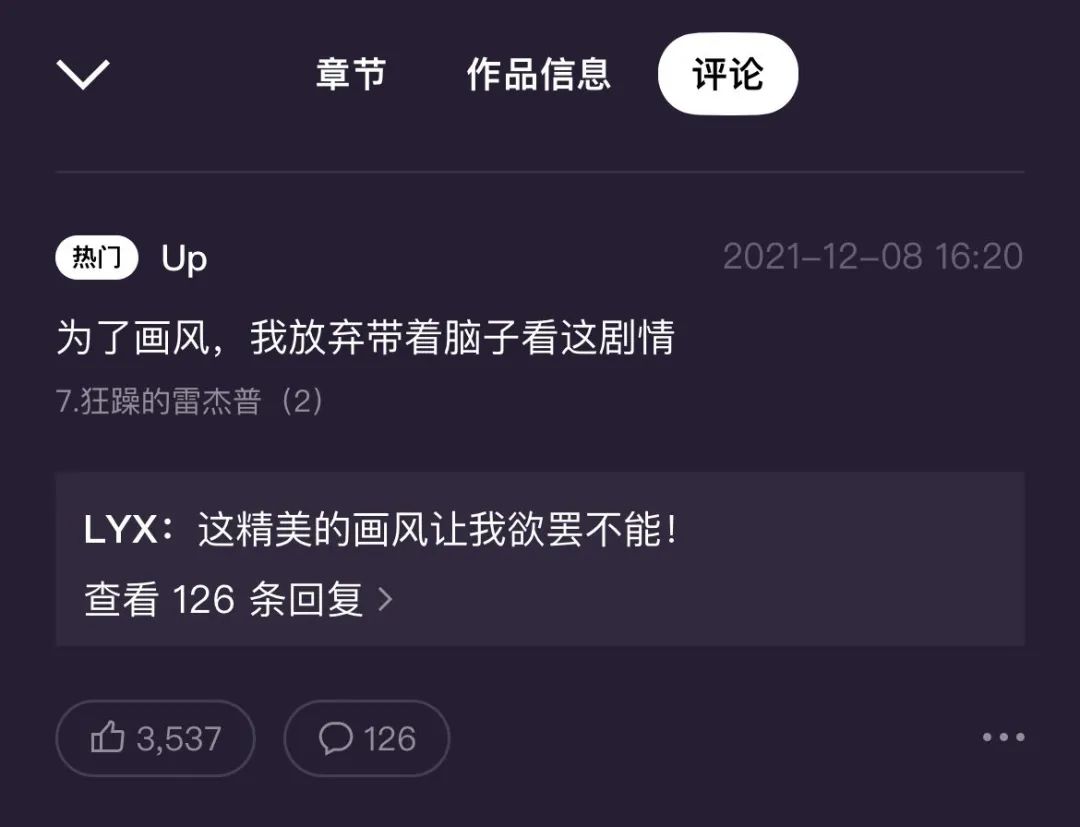 有趣的是,两方观点只是看上去水火不容。在PODO《恶女不做提线木偶》的评论区,不少高赞热评表示自己最终败给华丽画风,选择“不带脑子继续追更”,自动过滤掉部分情节bug。