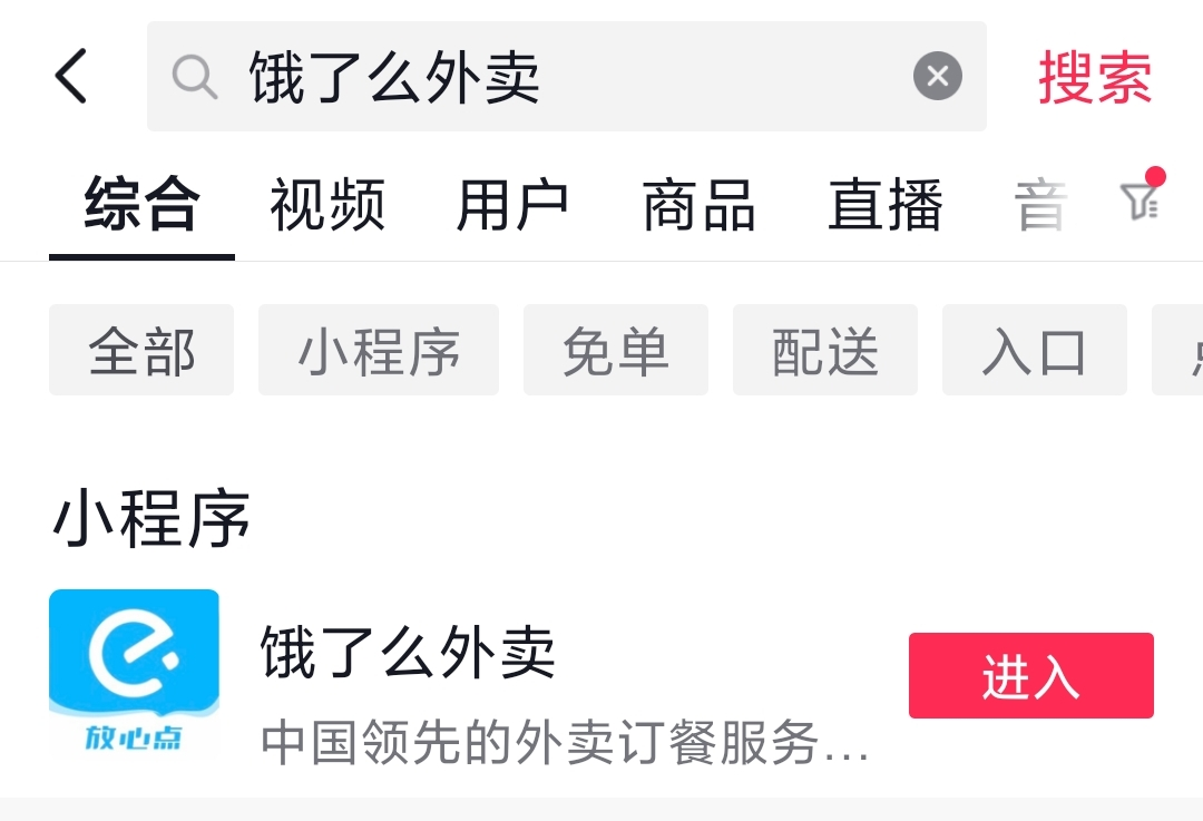 11月初,饿了么抖音小程序上线,虽然目前只落地了南京,但等到渠道跑通,相信很快可以补强抖音在配送等环节的弱点。日前“饿了么外卖”抖音小程序,也已在全国大部分城市开通,抖音用户可通过搜索“饿了么”等关键词找到入口。
