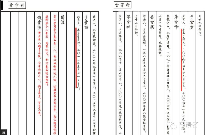本来无可厚非的一件事,为什么激起了这么大的波澜?就是因为云字科备注的一句话,红字写的一句话:另有曾用云字艺名者二人,欺天灭祖悖逆人伦,逢难变节卖师求荣,恶言构陷意狠心毒,似此寡廉鲜耻令人发指,为警效尤,夺回艺名逐出师门。