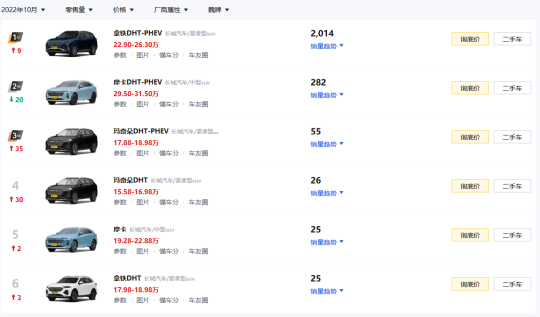 (长城魏派系列十月份销量 图源:懂车帝)