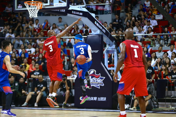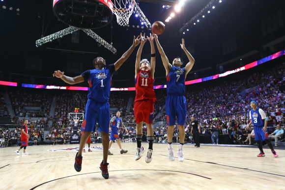 在名人赛正赛中,以麦迪、贾森-威廉姆斯、王仕鹏、孙杨、萧敬腾领衔的明星蓝队以84:83后来居上,战胜了由比卢普斯、慈世平、马布里、吴亦凡、苏醒领衔的明星红队。
