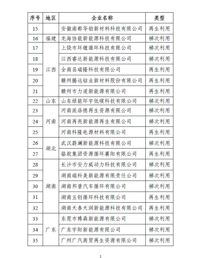 从区域分布看,江西、湖南上榜数量最多,均为5家,其次为广东,上榜数量为4家。宁德时代、格林美、华友钴业、南都电源、旺能环境等多家上市公司的下属企业进入了此次白名单。比如,格林美全资子公司天津动力电池再生技术有限公司,华友钴业孙公司江苏华友能源科技公司,宁德时代全资子公司湖南邦普汽车循环有限公司等等。