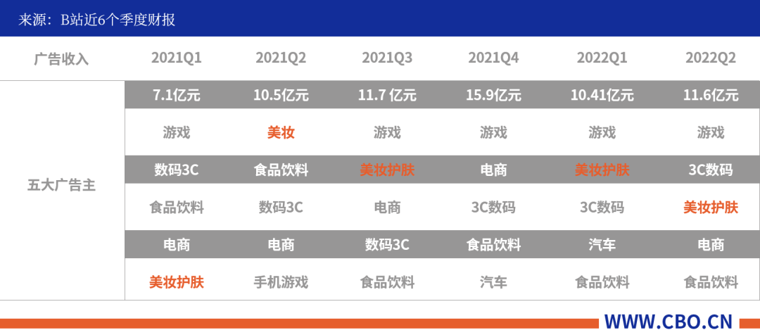 B站财报显示,2021年前三季度,平台内美妆客户投放金额排行均在前五。2021年Q4,美妆首度跌出B站前五大广告主行前五。