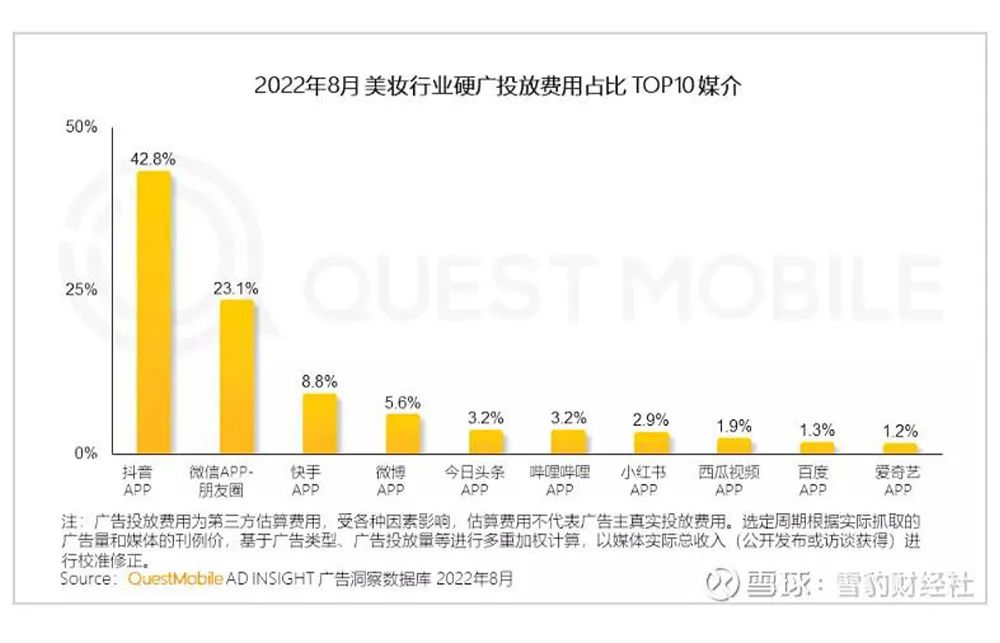 QuestMobile发布的《2022美妆行业市场及营销洞察报告》显示,在营销推广渠道上,抖音成为品牌押注硬广的主阵地。