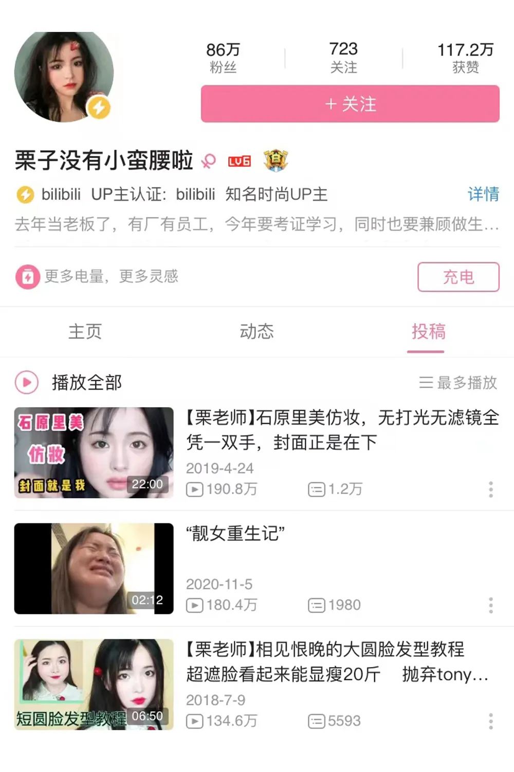 美妆up主@栗子没有小蛮腰啦 已经停更两年了。