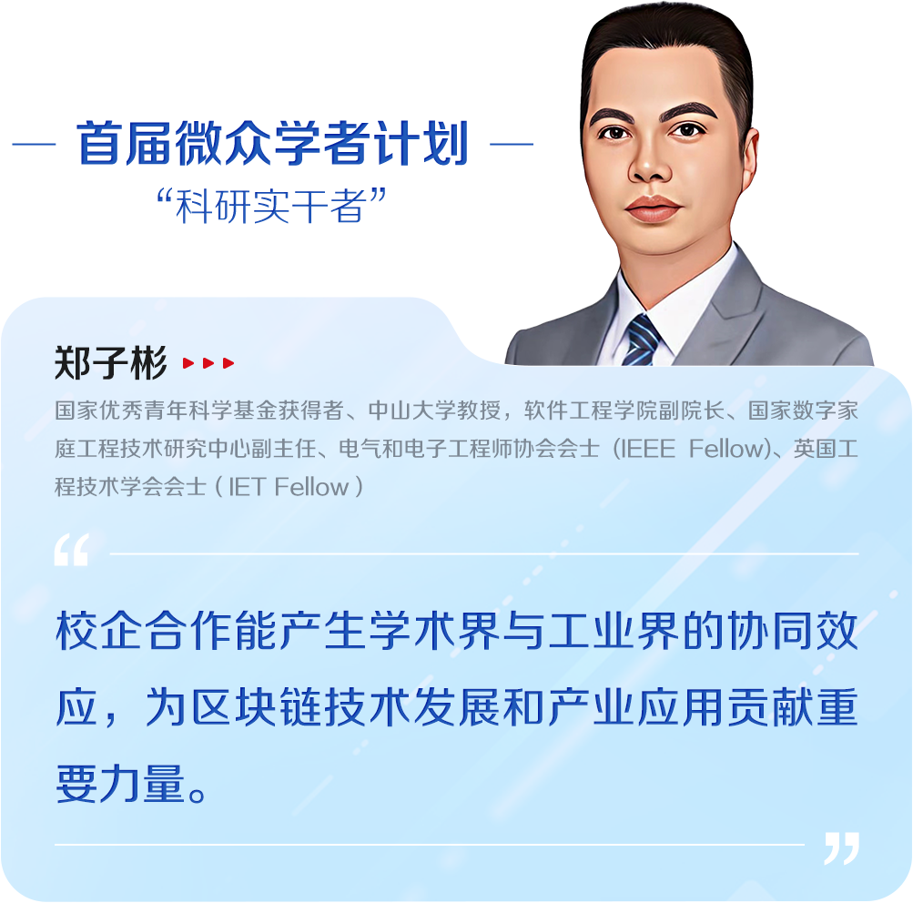 除“微众学者计划”之外,郑子彬教授及其所属的中山大学,也与微众银行联手促成了区块链人才培养规划、区块链开源社区生态的落地实践。