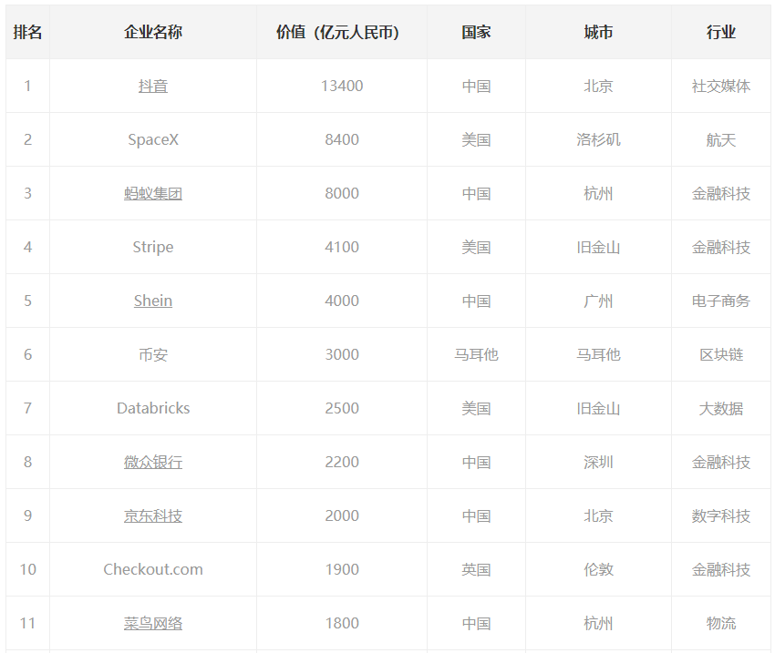 另据胡润研究院发布《2022年中全球独角兽榜》,SHEIN以4000亿人民币位列全球第五,紧随抖音、蚂蚁集团之后。