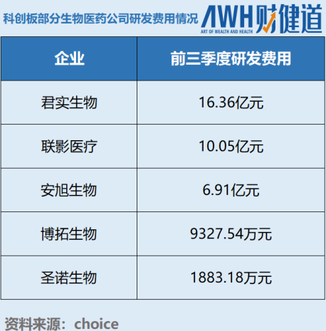 除研发费用冠绝科创板的百济神州(上半年研发费用为50.16亿元)之外,前三季度研发费用16.36亿元的君实生物(688180.SH),以及同期研发费用10.05亿元的联影医疗(688271.SH),研发费用达6.91亿元的安旭生物(688075.SH)等,有望获益。