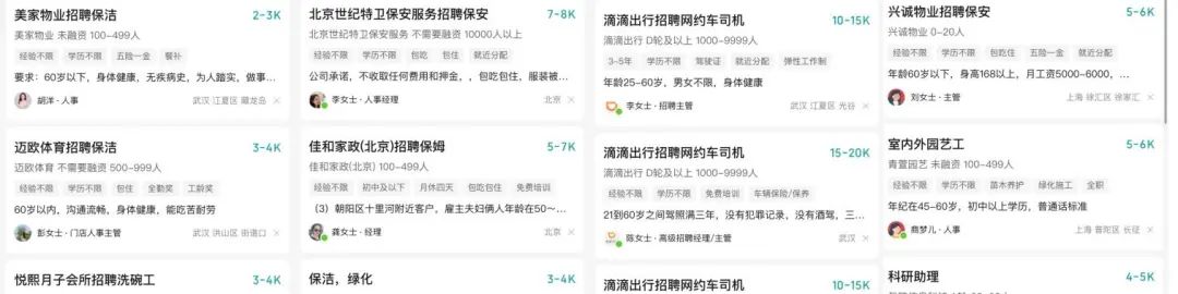 另一方面,在大众化招聘网站上,输入“大龄”“60岁”等关键词,可以找到许多企业正在招聘低龄老年人。