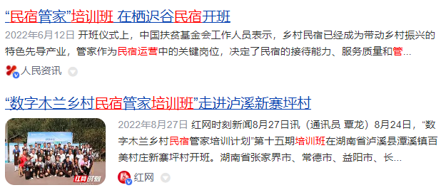 网页搜索民宿培训结果
