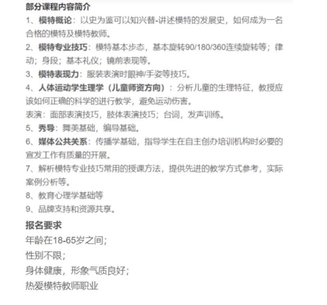 北京某模特教培机构招生要求