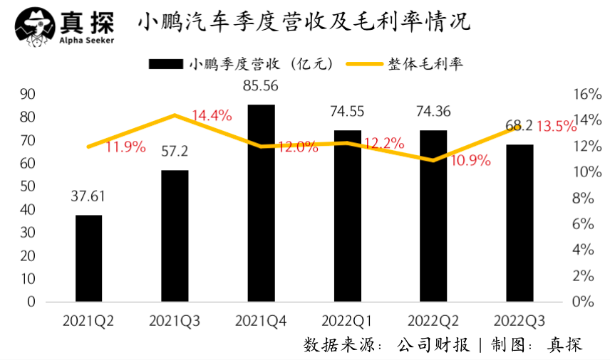 毛利层面,三季度,小鹏毛利率为13.5%,去年同期为14.4%,上一季度为10.9%;