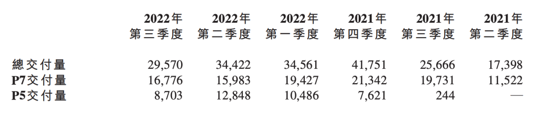 由于小鹏G9是在10月才开始交付,因此三季度小鹏的车辆交付结构仍以P7和P5为主。财报显示,P7三季度总共交付16776辆,占总交付量的56.7%;P5交付8703辆,占总交付量的29.4%。