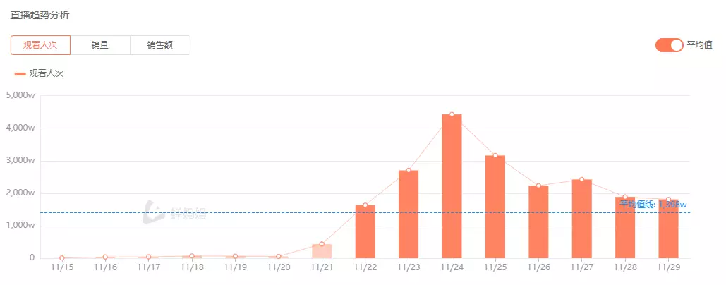 张兰开始拥抱这些流量。尽管张兰也明白,他们中很多人,并不是为买货而来,更多是想看直播吃瓜。从11月21日开始,张兰直播间流量开始攀升。蝉妈妈数据显示,11月24日那天的直播,张兰的场观人次达到了最高的3635.2万人次,同时在线人气创造了最高40.4万的峰值。