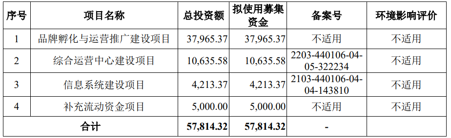 招股书指出:拉拉米本次IPO计划募集资金5.78亿元。其中,品牌孵化与运营推广建设项目拟使用募集资金3.8亿元,综合运营中心建设项目拟使用募集资金1.06亿元,信息系统建设项目拟使用募集资金0.42亿元,补充流动资金项目拟使用募集资金0.5亿元。