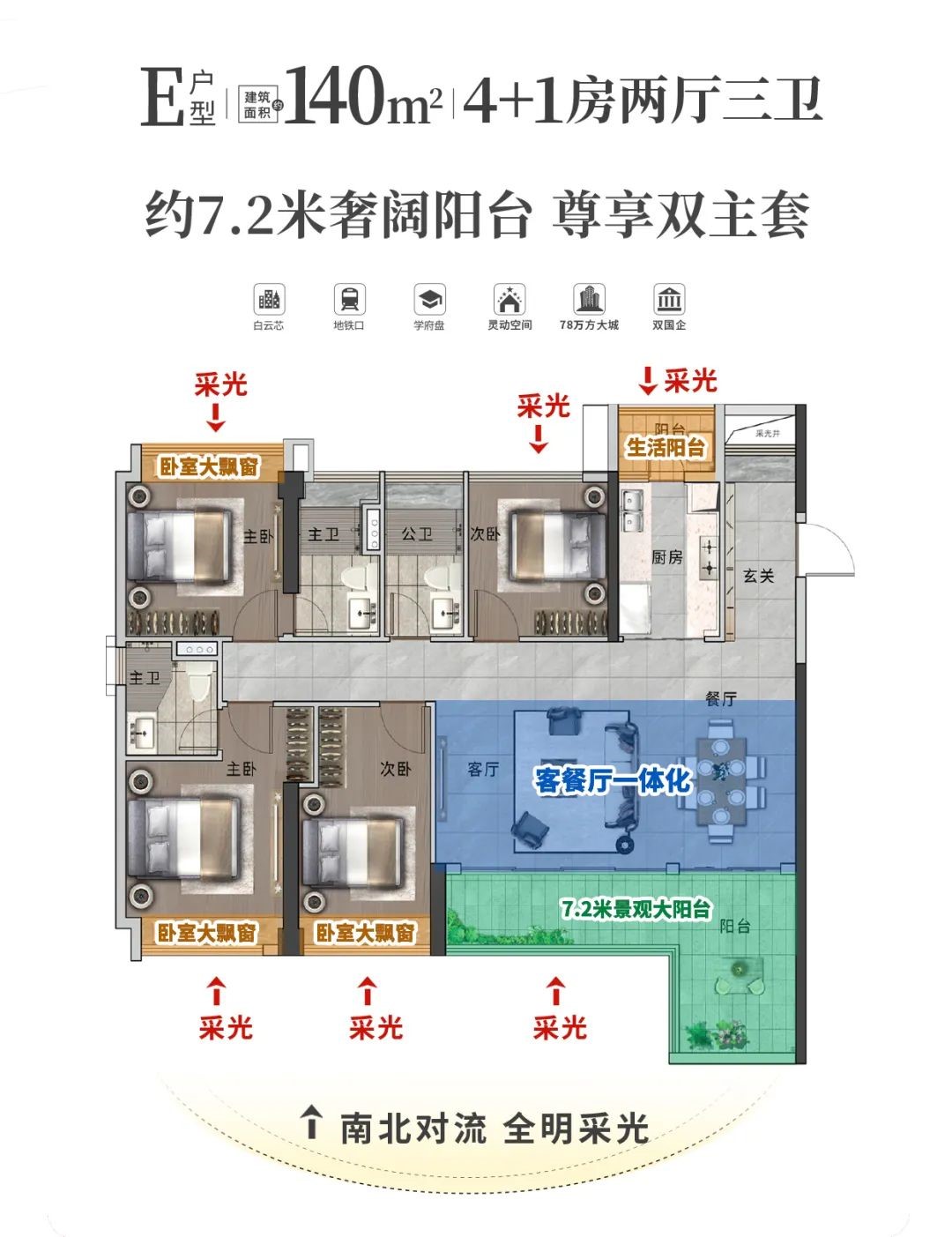 6.3米的大阳台,业主可以在此早起晨运、夜观星辰;闲时品茗,欢聚一堂。