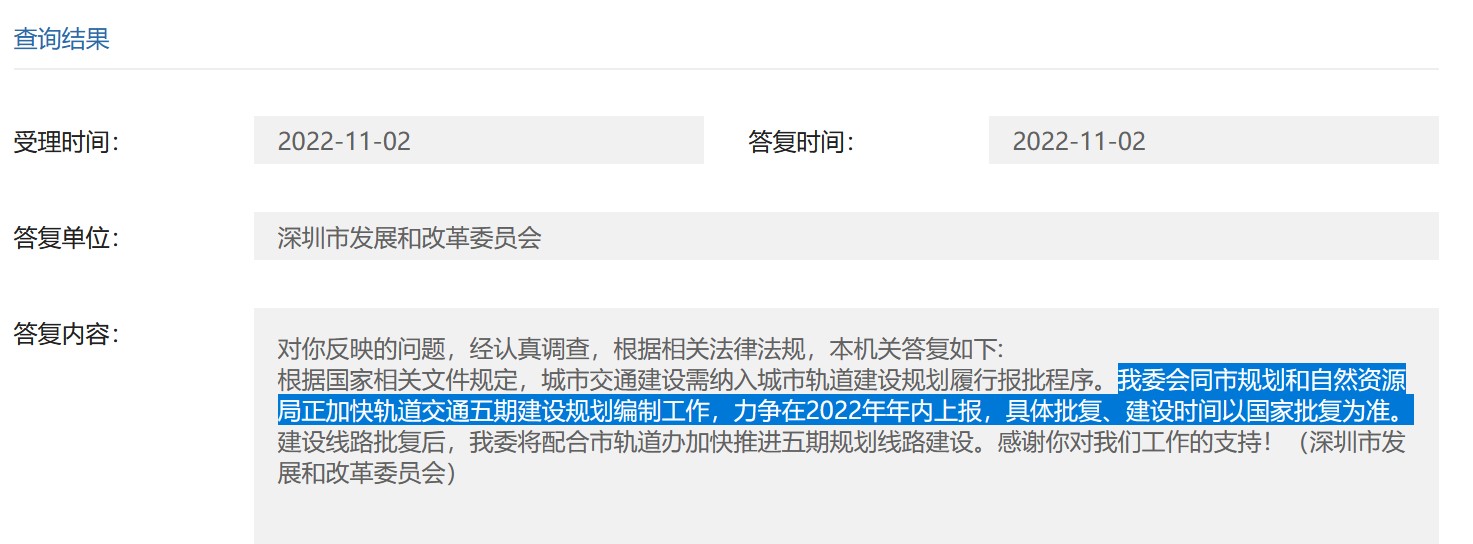 深圳市发改委在答复市民关于五期规划的相关疑问时明确表示,深圳市将力争在2022年年内上报,具体批复、建设时间以国家批复为准。