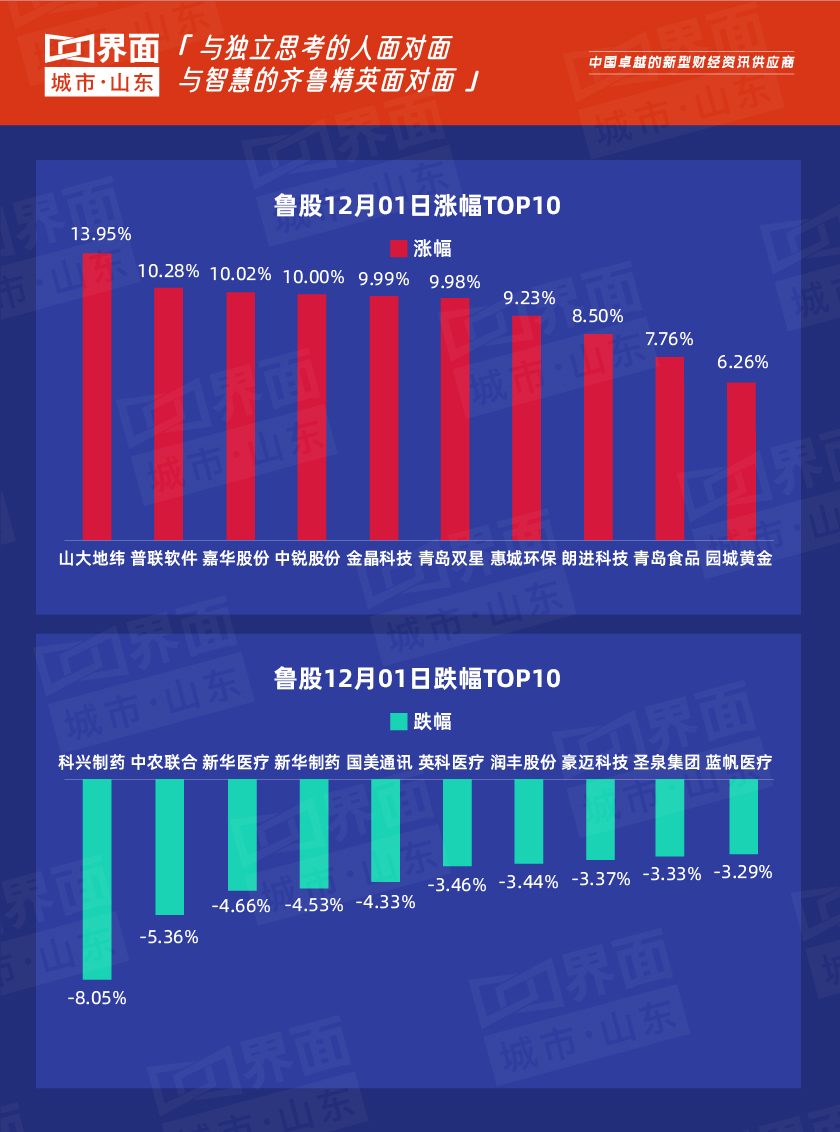 12月1日,山东180只个股上涨,101只个股下跌。