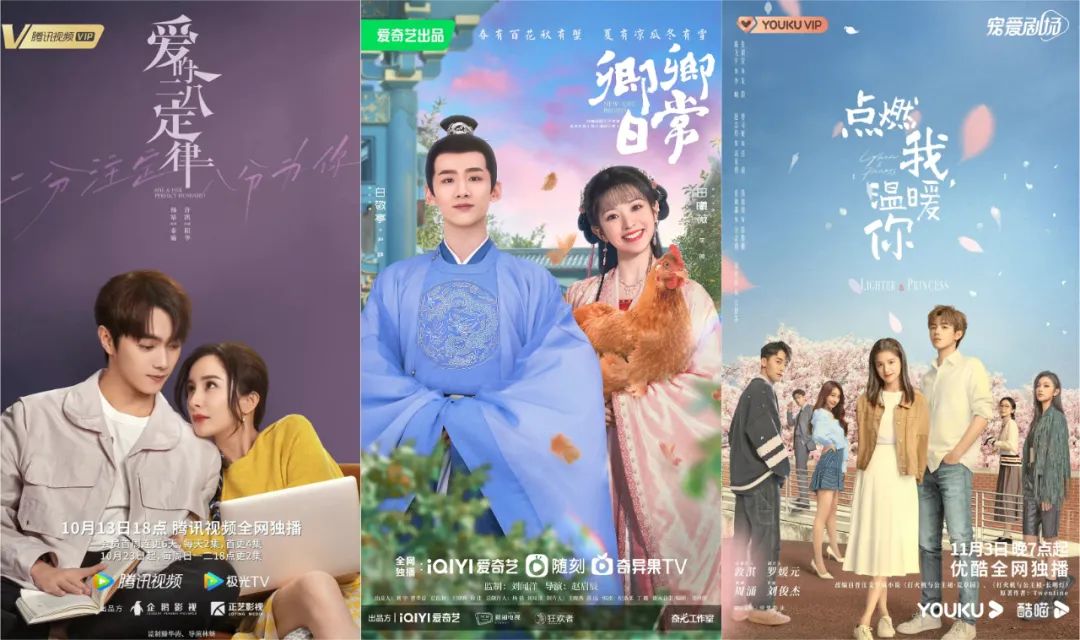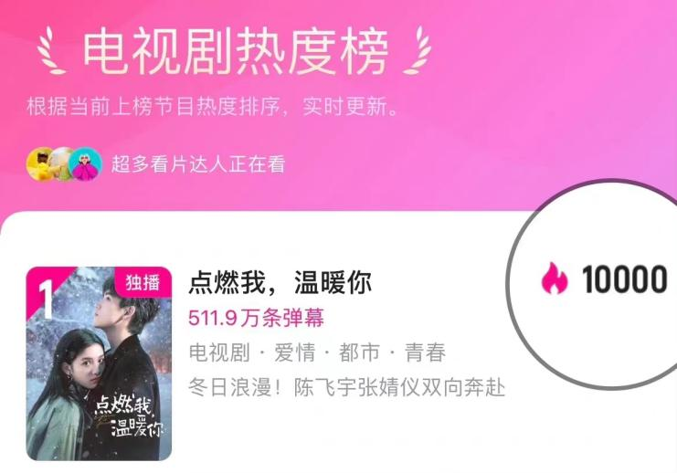 2022年11月上新的三部电视剧《点燃我,温暖你》《卿卿日常》《爱的二八定律》分别用了8天、7天、1天时间就迅速达成了站内热度破万的傲人战绩。《爱的二八定律》甚至仅用2天时间,站内热度已经逼近3万。