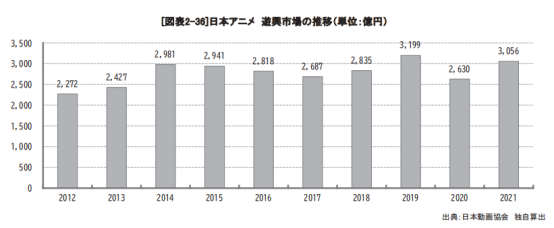 日本动画游艺市场规模推移 数据出处:日本动画协会