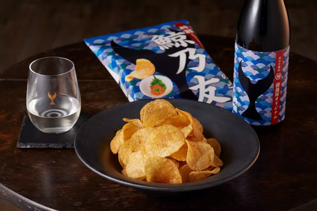 湖池屋本次联名的是位于高知县的醉鲸酒造,致力于酿造“食中酒”,即更适合与料理一起享用的清酒。