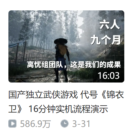 因此,作为大厂来说,题材上选择国风武侠很顺其自然,既是理想的方向,也是产品风格上的探索,但也需要突破。他们也不约而同都选择在动作类下功夫。个中考量,或许就如武侠动作游戏代号《锦衣卫》独立制作人“离忧先生”在《钱从哪儿来》栏目中所说,“主要是觉得缺这样的游戏”,而他自己本身是90后,也了解这样的题材。