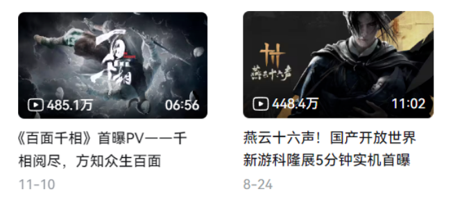 没错,这几排“连珠炮”说的便是从8月到11月,腾讯、网易投资工作室、叠纸相继曝出产品PV——《代号:金庸》《燕云十六声》和《百面千相》 。都是“国风武侠+动作”的准3A配置。