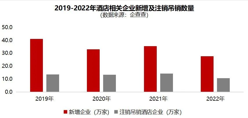 另外值得注意的是,尽管近三年内酒店相关企业注销吊销38.1万家,但从年份来看除了2021年注销吊销14.1万家达到峰值以外,2020年和2022年注销吊销数量相对较低,2022年仅注销吊销10.7万家,由此可见市场情绪在今年已有所缓和,面对疫情冲击也更加坚定。