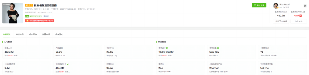 咱们对比下数据就会发现,张兰的直播体现出两个特点:有热点事件时流量大,但成交转化率相对较低。